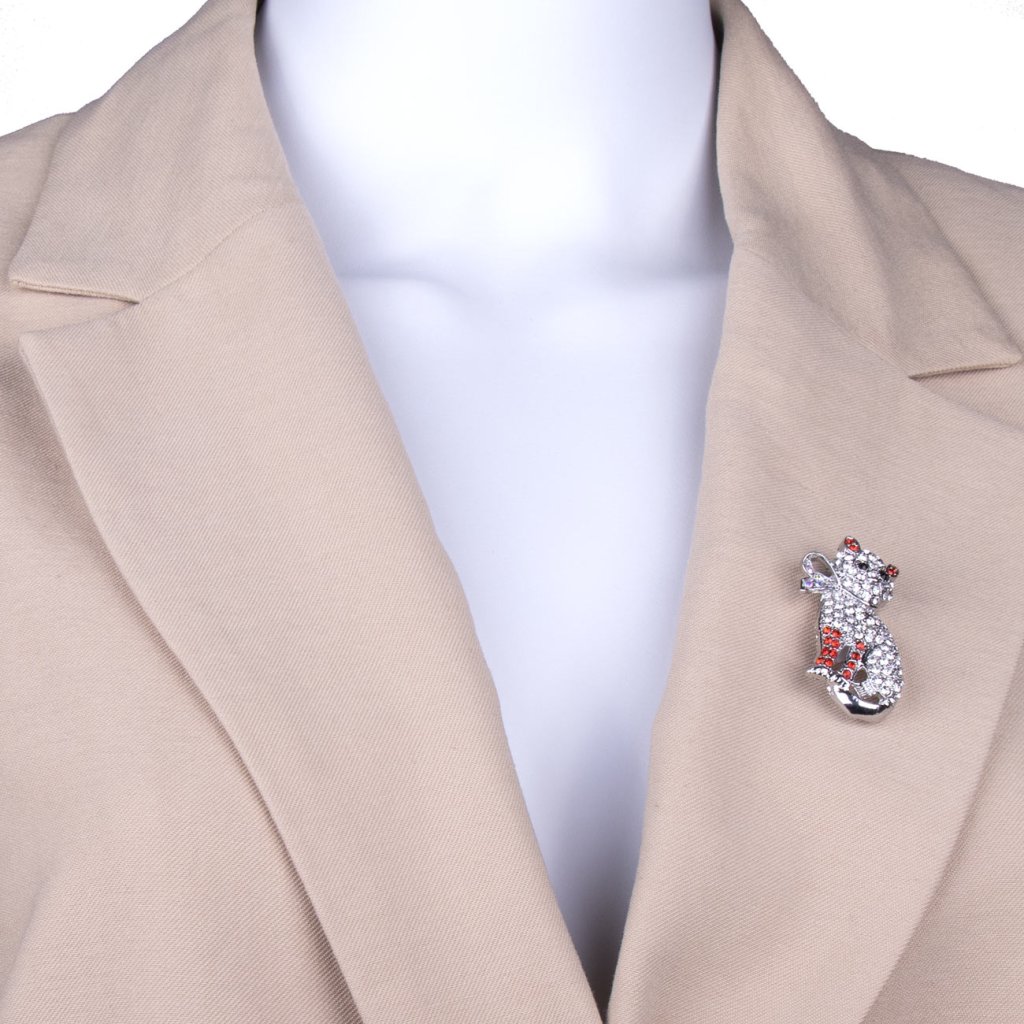 Brošňa - mačička vykladaná zirkónmi, červená farba, 9001787-5