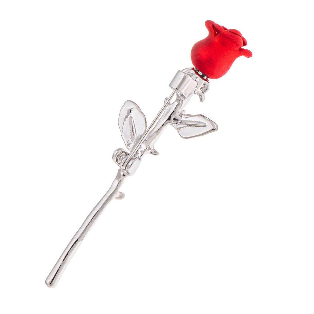 Elegantná brošňa s motívom rozkvitnutej ruže pôsobí nadčasovo a symbolicky. Kontrast výrazného červeného kvetu s jemne tvarovaným kovovým stonkom a listami vytvára harmonický celok, ktorý podčiarkne ženskosť a cit pre detail. Brošňa sa krásne vyníma na kabáte, saku aj šatách a stane sa pôsobivým doplnkom pre každodenné nosenie aj výnimočné príležitosti.