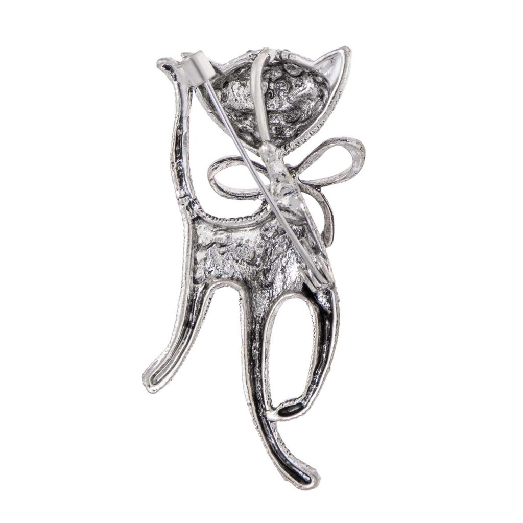 Štýlová brošňa v tvare mačky je zdobená drobnými zirkónmi v elegantnom striebornom tóne, ktoré vytvárajú decentný, ale napriek tomu výrazný efekt. Čisté línie, mašlička na krku a precízne spracovanie dodávajú brošni šperkový charakter. Skvele doplní kabát, sako aj šaty a poteší každého, kto má rád zvieracie motívy v elegantnom ponímaní.