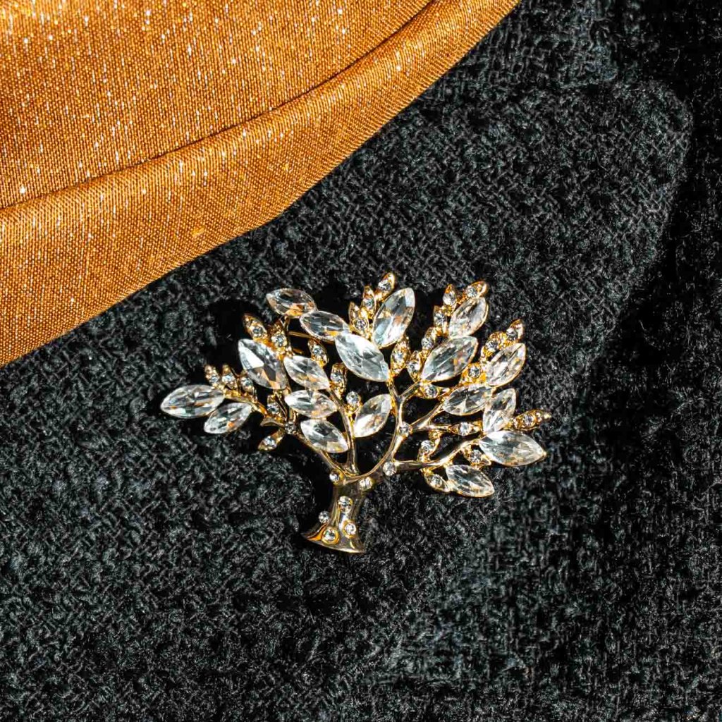Brošňa v tvare stromu má veľmi zaujímavý dizajn. Brúsené kamienky sa decentne sa trblieta, využijete ju na slávnostné udalosti, návštevy divadiel a pod.