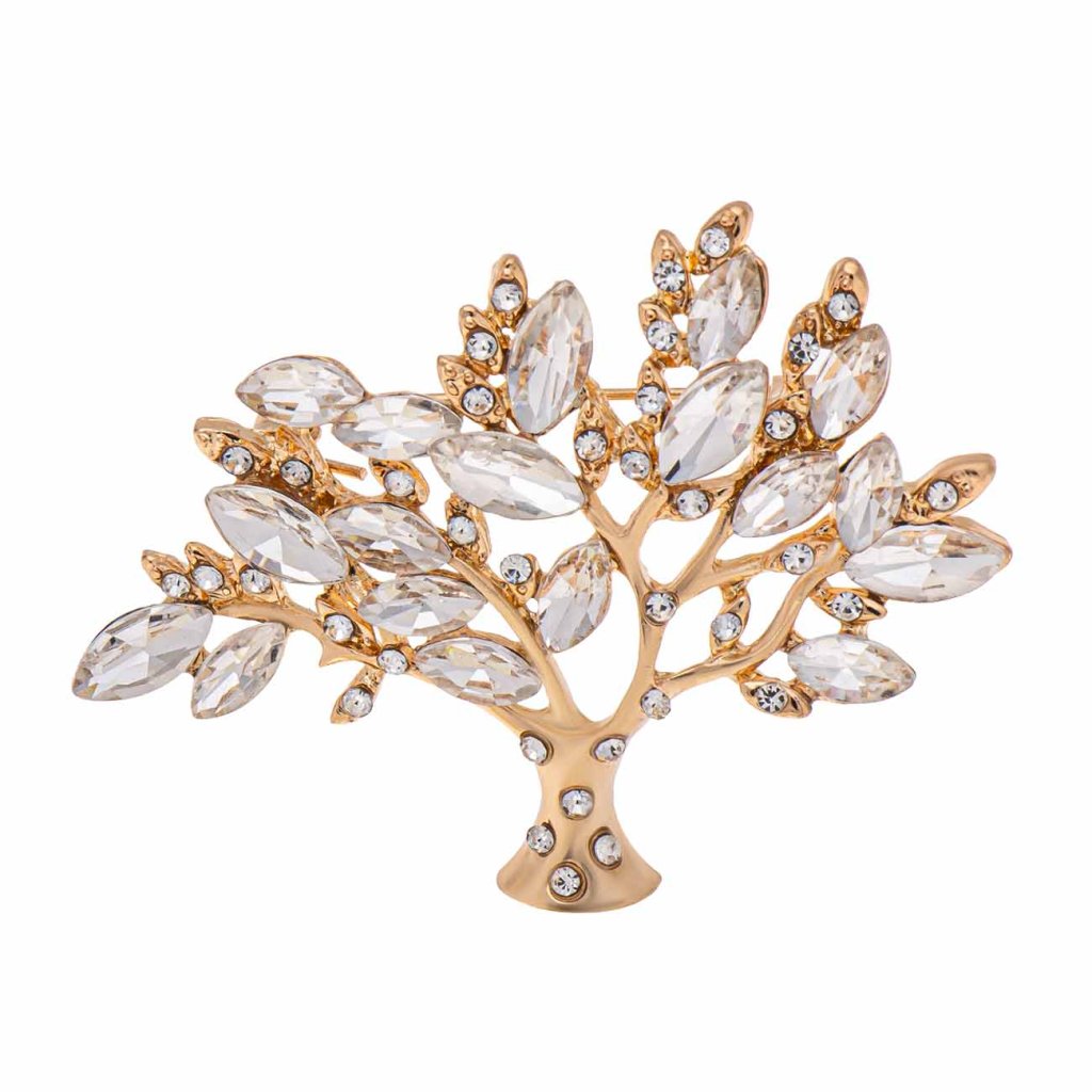 Brošňa strom číre kamienky, zlatej farby 9001463-4