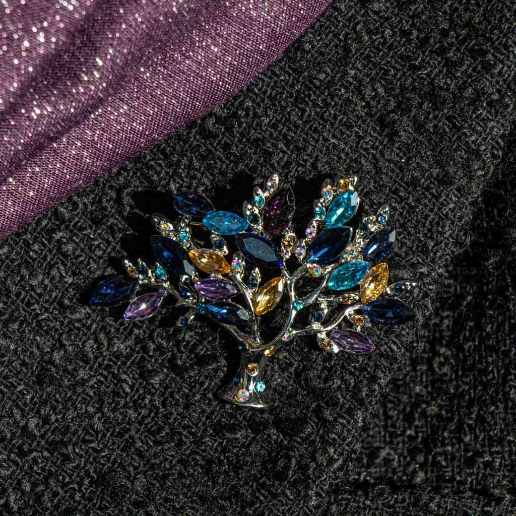 Brošňa v tvare stromu má veľmi zaujímavý dizajn. Brúsené kamienky sa decentne sa trblieta, využijete ju na slávnostné udalosti, návštevy divadiel a pod.