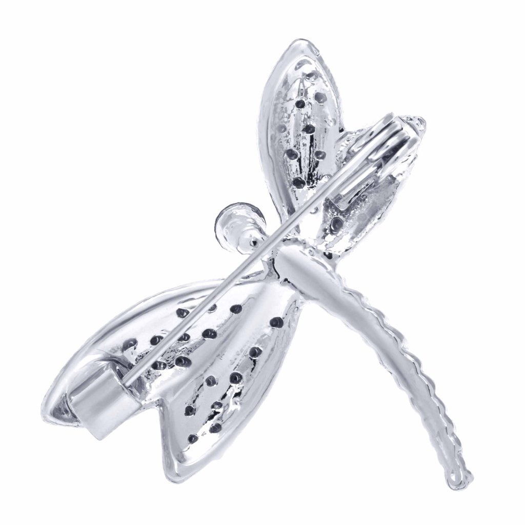 Brošňa vážka strieborná modré zirkóny 2045-2