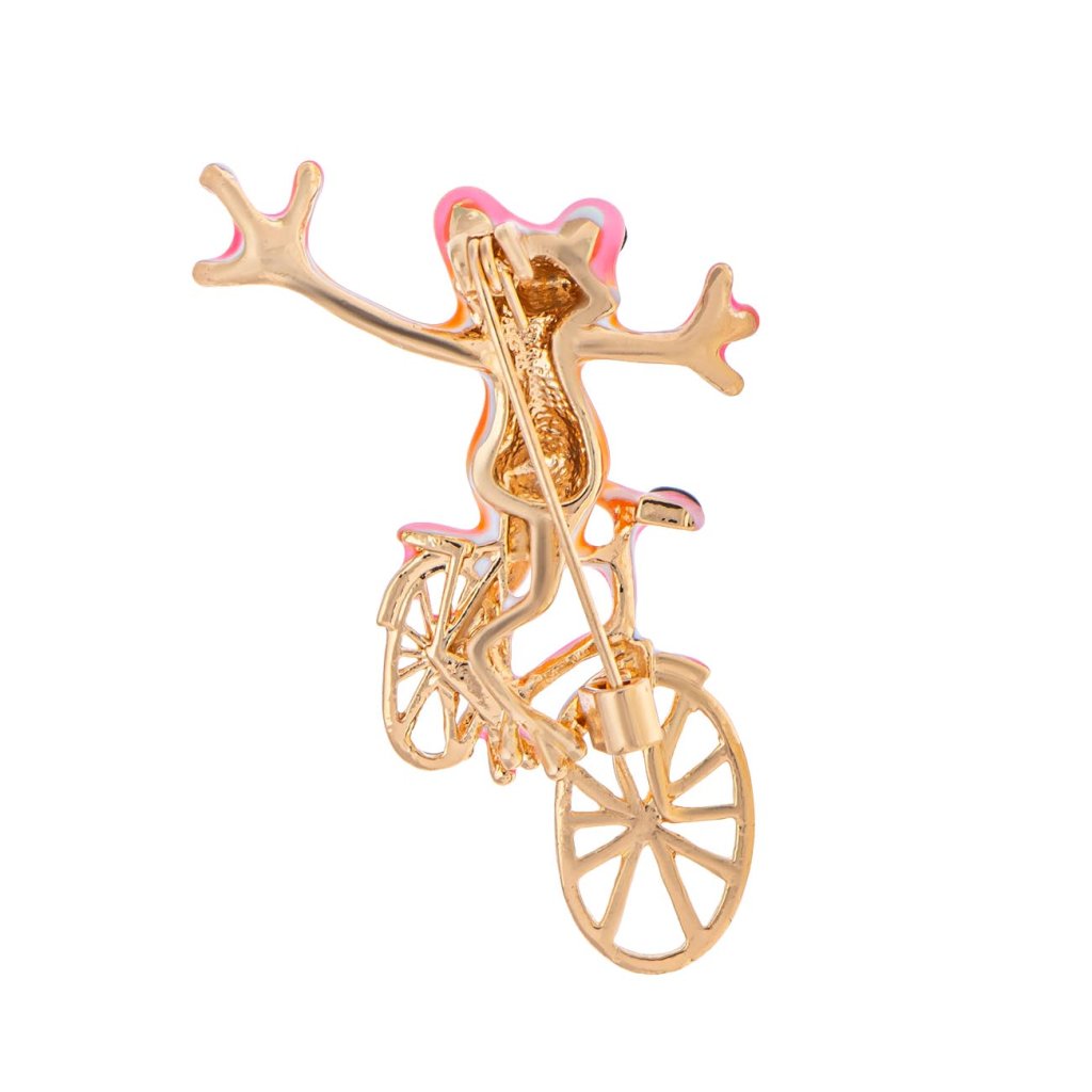 Brošňa žaba na bicykli ružová 9002010-1