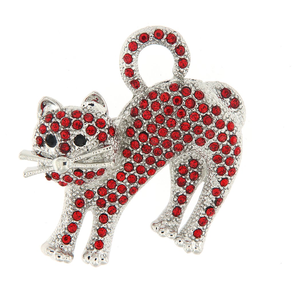 Brošňa - mačka s brúsenými kamienkami, červenej farby 9001696-1