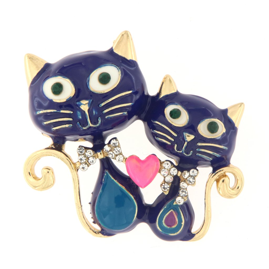 Brošňa - zamilované mačky so zirkónmi, modrej farby 9001492-1