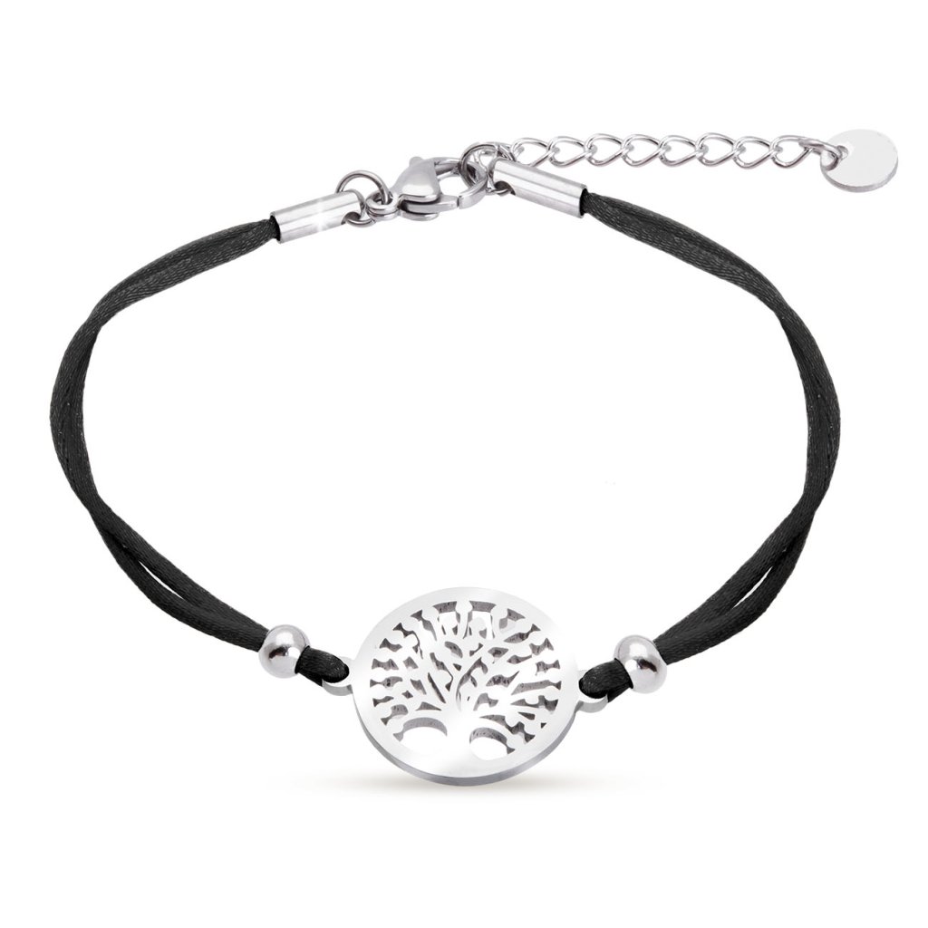 Šnúrkový náramok z chirurgickej ocele, strom života čierna 2002276-2