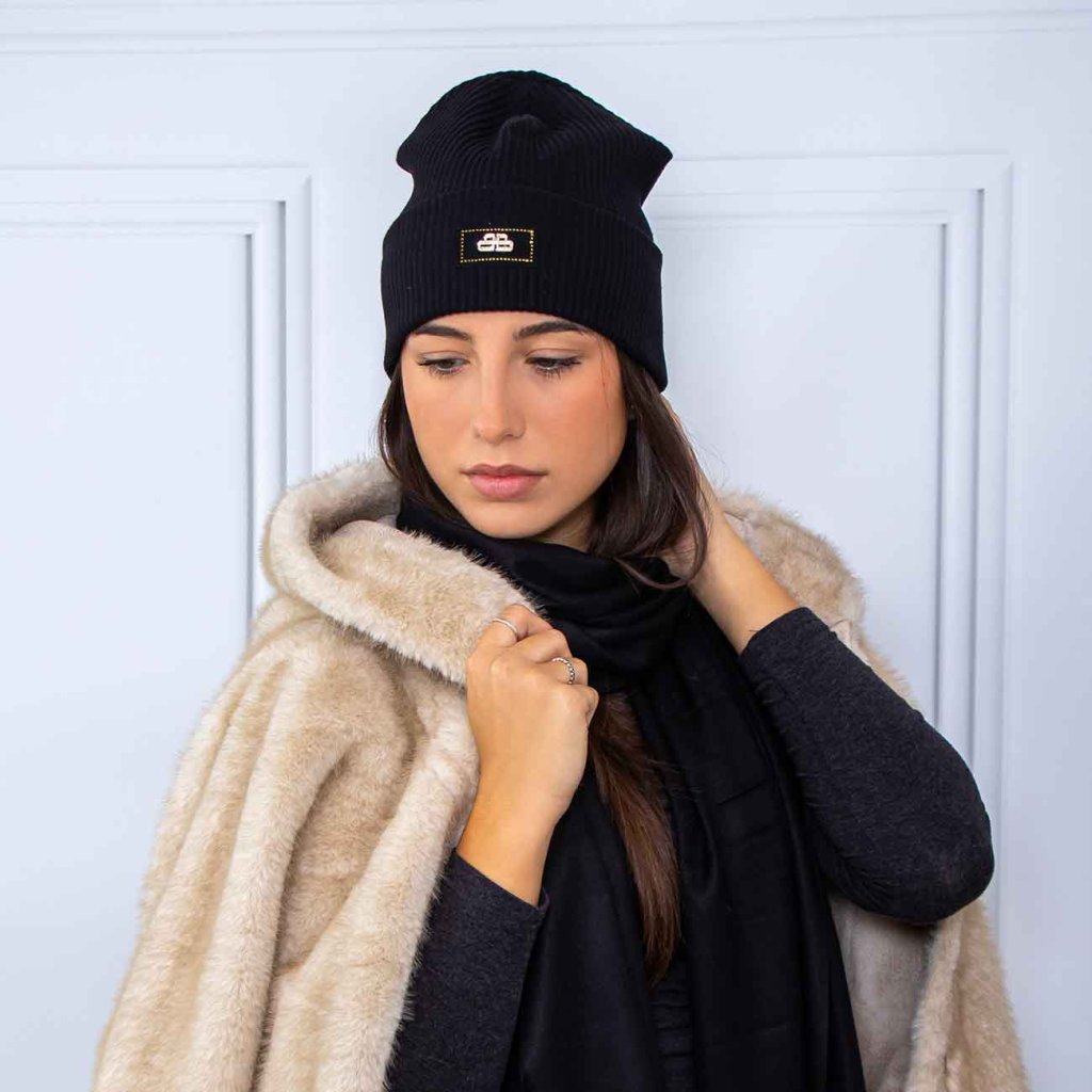 Štýlová a hrejivá čiapka v elegantnom čiernom prevedení je ideálnou voľbou pre chladné dni. Mäkký rebrovaný úplet sa perfektne prispôsobí hlave a vďaka zlatému detailu s logom pôsobí moderne a luxusne. Čiapka sa ľahko kombinuje s kabátom aj športovou bundou – doplní každý outfit o nenápadný, ale výrazný akcent.