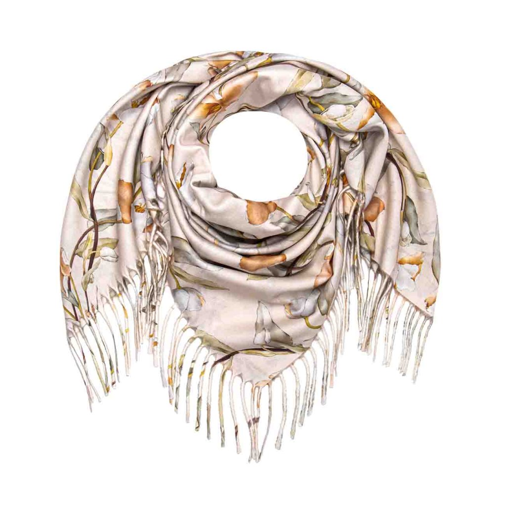 Dámska hrejivá šatka kvetinová béžová 7200802