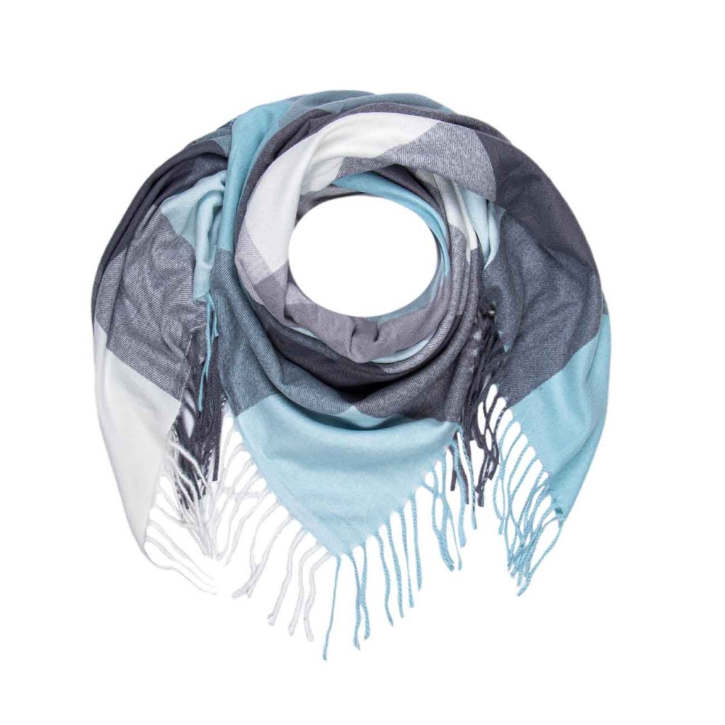 Štýlový dámsky šál v chladivých odtieňoch sivej, modrej a bielej. Dokonale sa kombinuje s džínsovinou aj zimným kabátom. Ľahký, hrejivý a mäkký materiál zabezpečí komfort po celý deň.