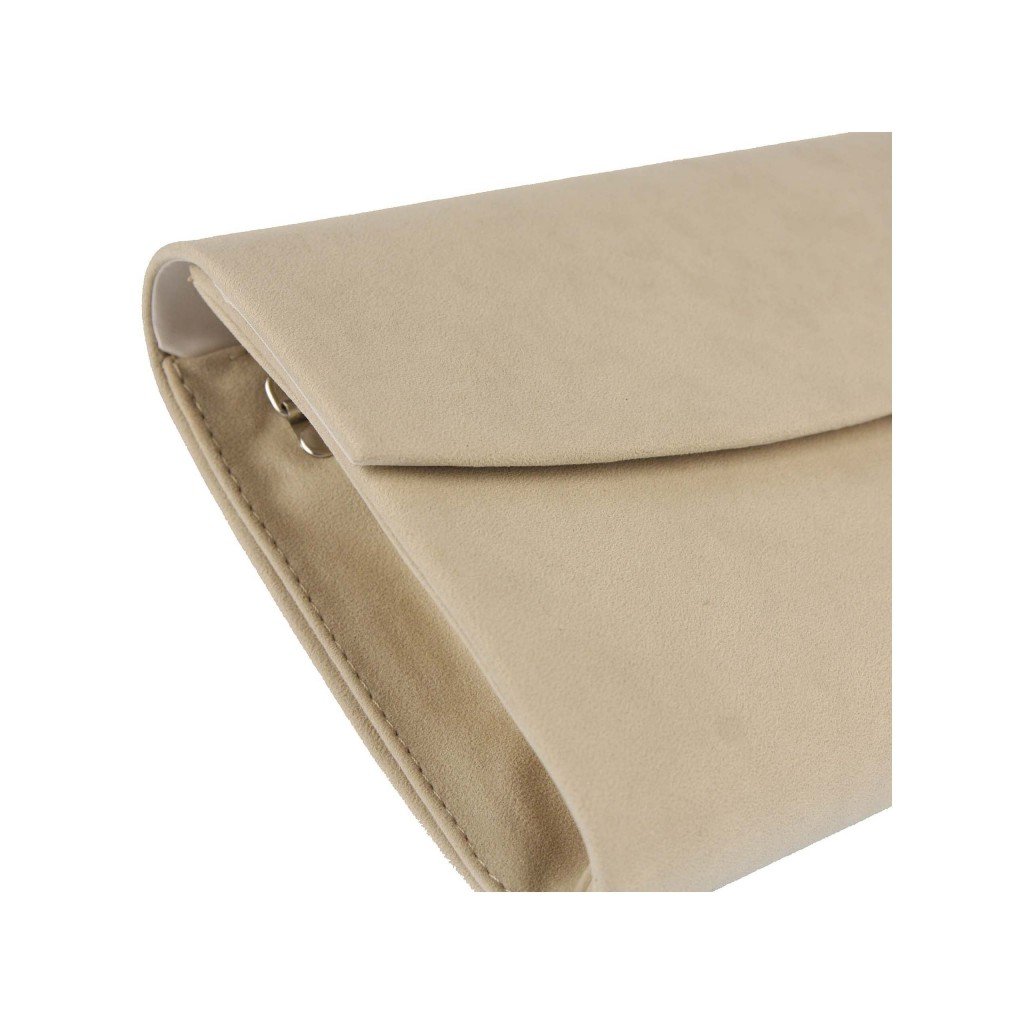 Štýlové listové psaníčko značky ARWENA z jemného semišového materiálu pôsobí elegantne a sofistikovane. Matný povrch dodáva kabelke decentný vzhľad, ktorý ľahko skombinujete s rôznymi farbami outfitov. Vďaka svojmu univerzálnemu béžovému odtieňu sa hodí k večerným šatám aj denným elegantným kombináciám. Kabelka ponúka dostatok priestoru pre nevyhnutnosti, ako je telefón, kľúče či drobná kozmetika, a pritom zostáva ľahká a praktická. Nadčasový dizajn robí z tohto psaníčka ideálny doplnok na plesy, svadby aj iné spoločenské príležitosti.
