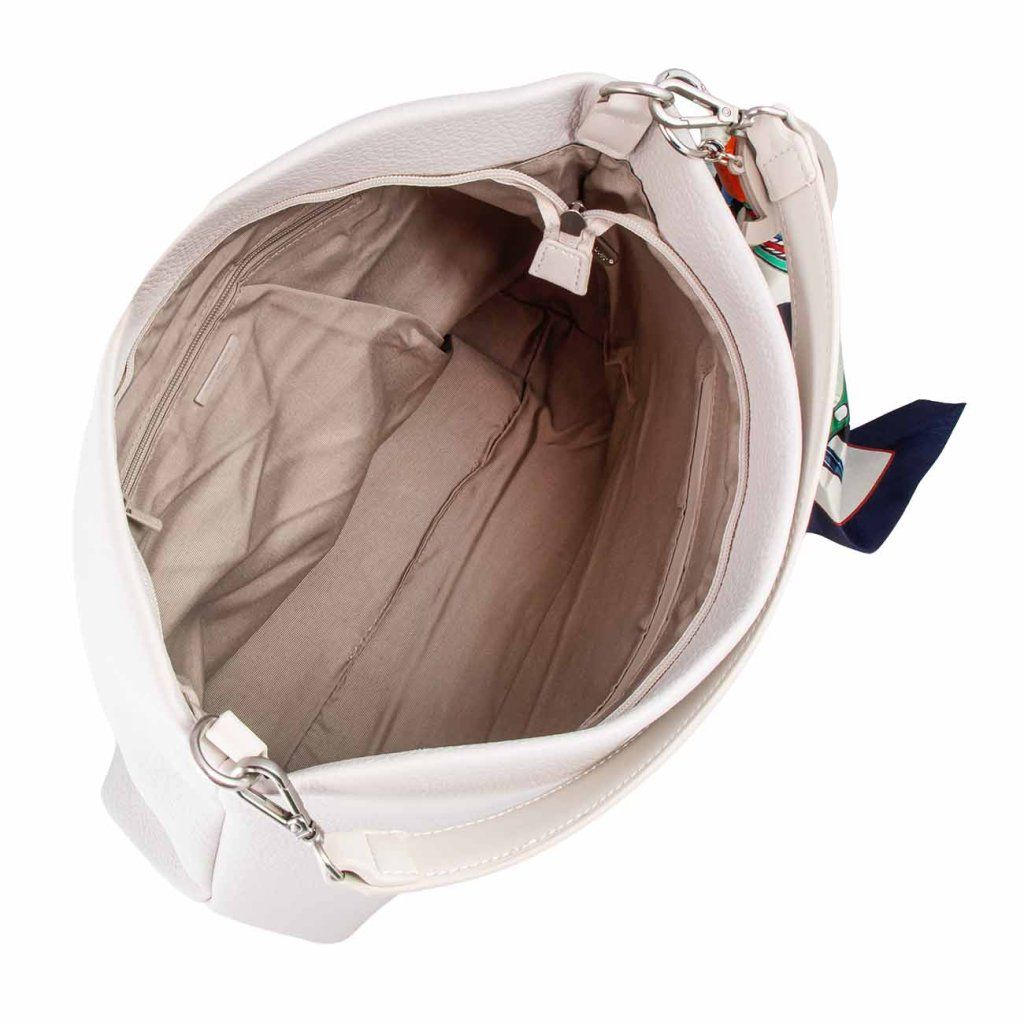 Moderná a nadčasová kabelka, ktorá zaujme svojou minimalistickou eleganciou a jemne štruktúrovaným povrchom. Čisté línie dopĺňa štýlová šatka zavesená na boku, ktorá dodáva kabelke originálny a svieži vzhľad. Vďaka svojmu tvaru a veľkosti je ideálna do práce aj na každodenné nosenie.