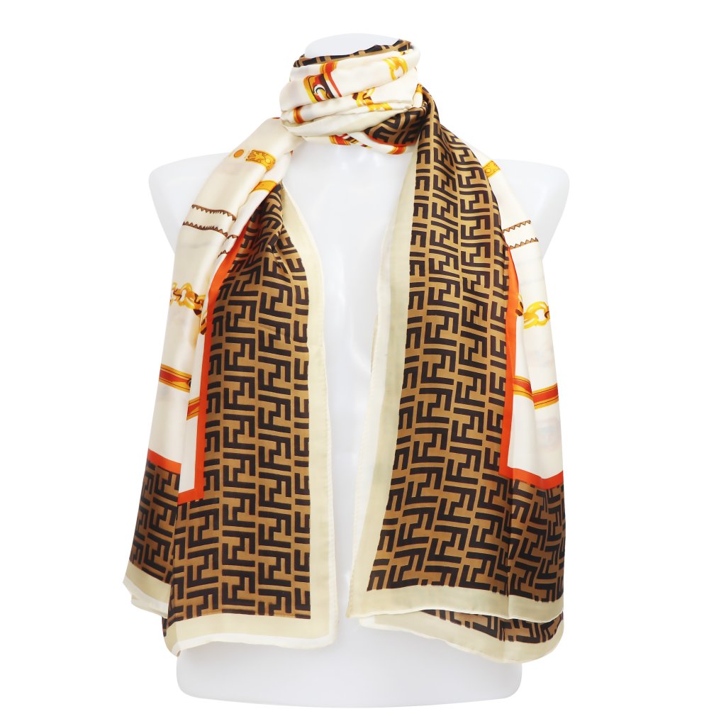 Dámsky obdĺžnikový šál 2113-9 s potlačou pásikov a retiazok, krémovej farby 7200540-2