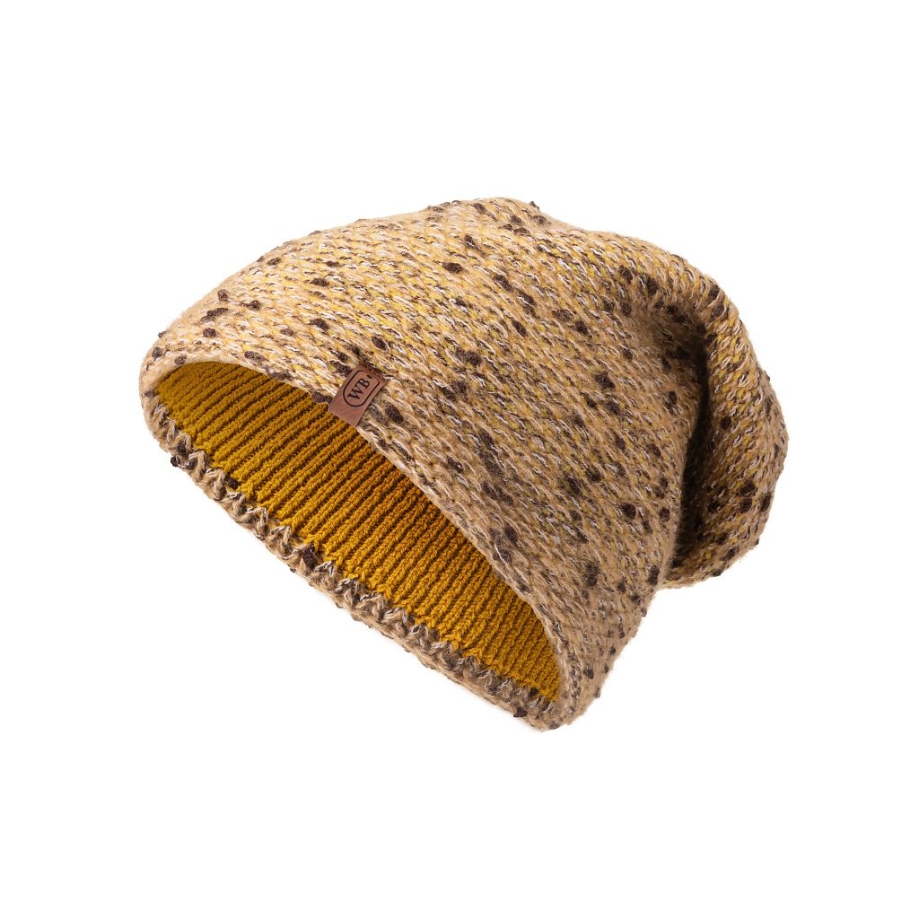 Dámska pletená zimná čiapka WROBI D44F, okrovej farby 7100444-2