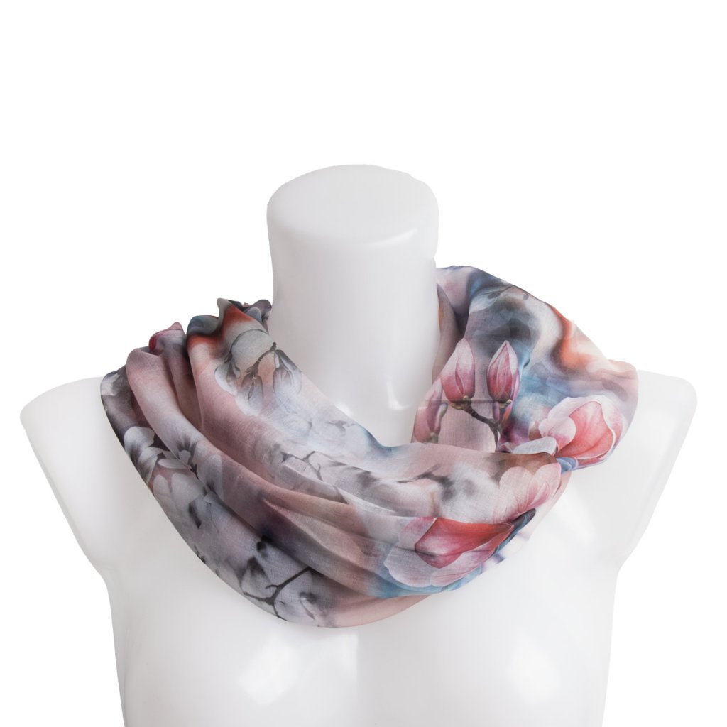Dámska šatka tunel s potlačou - rozkvitnuté vetvičky, ružovej farby 7200544-3
