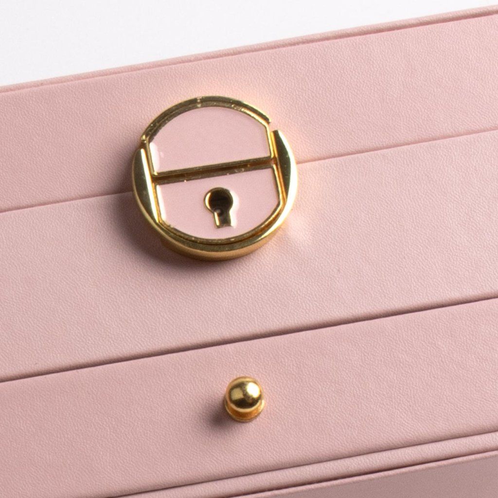 Kvalitný dizajn: šperkovnica je vyrobená z ekokože v ružovej farbe, ktorá jej dodáva elegantný vzhľad. Vnútro je potiahnuté mäkkým semišom krémovej farby, ktorý zaručuje ochranu vašich šperkov pred poškriabaním.