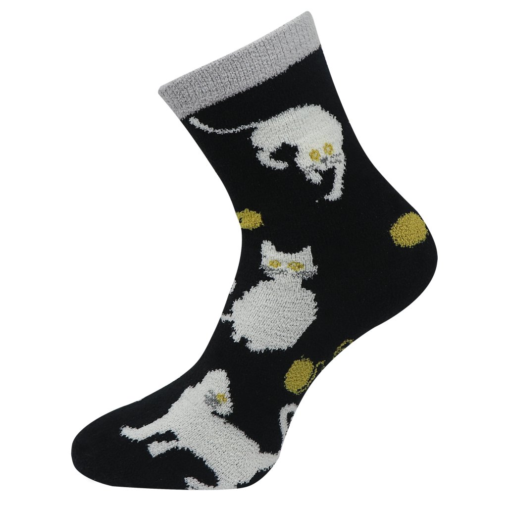 Dámske chlpaté termo ponožky s mačkami NB8917, čierno-žltej farby 9001502-1