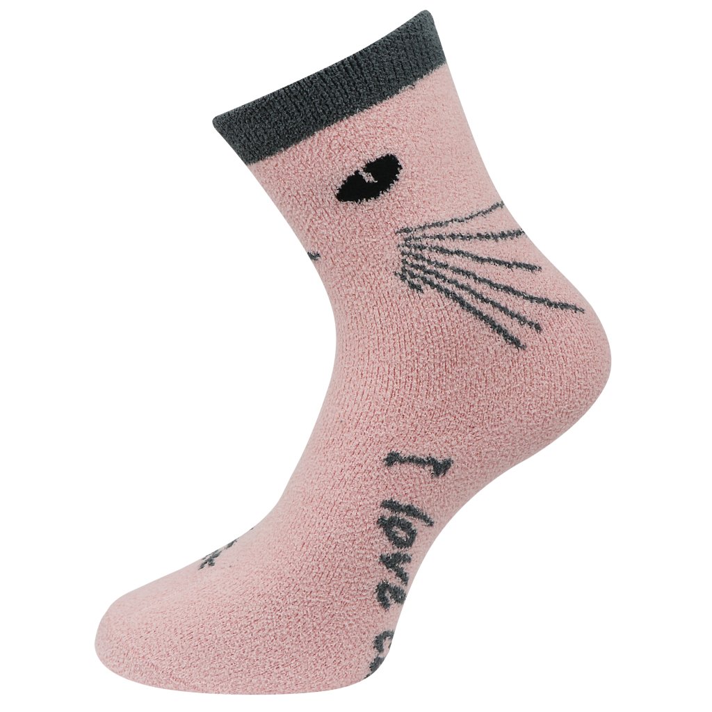Dámske chlpaté termo ponožky s mačkami NB8917, ružovo-sivej farby 9001502-6