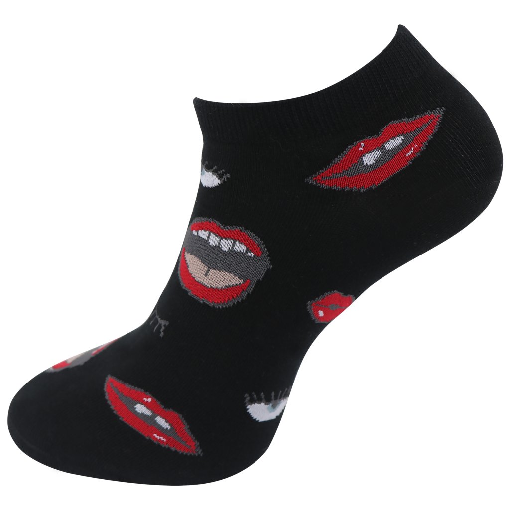 Dámske členkové ponožky s potlačou pusiniek - čiernej farby 9001462-6