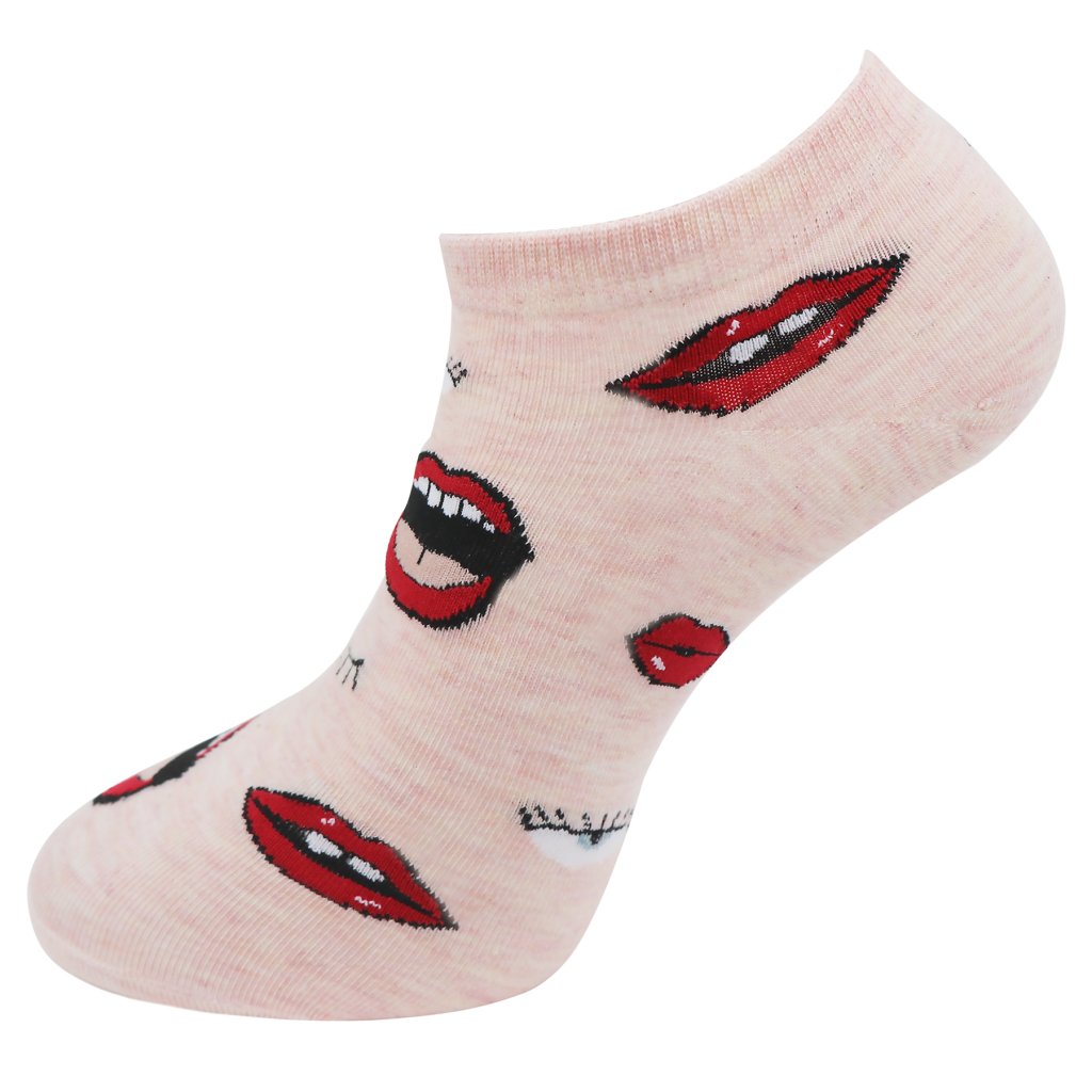 Dámske členkové ponožky s potlačou pusiniek - melír ružovej farby 9001462-10