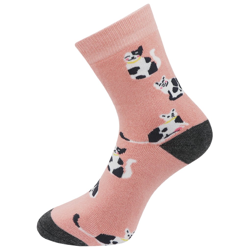 Dámske froté ponožky s potlačou čiernobielej mačky NV8865, ružovej farby 9001499-4