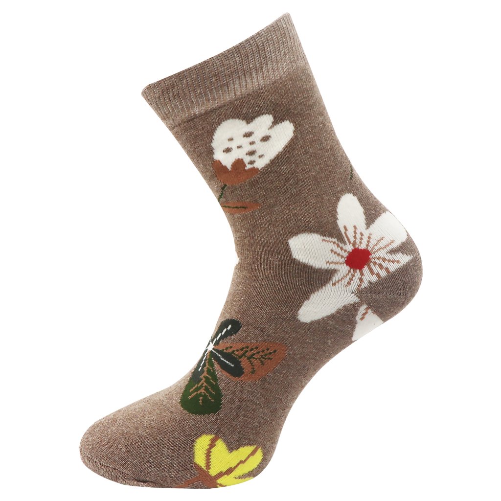 Dámske froté ponožky s potlačou kvetov NV8868 - hnedé farby 9001486-2