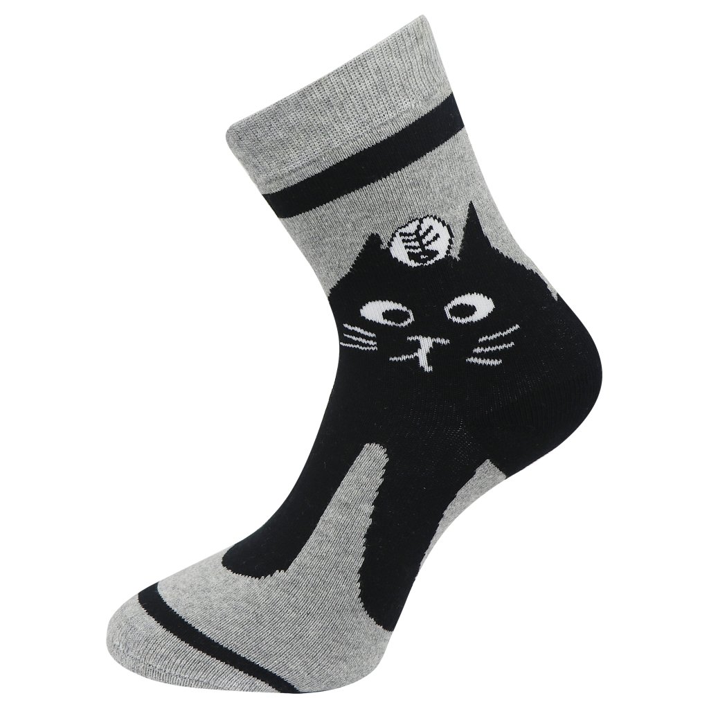 Dámske froté ponožky s potlačou mačky NV8860, šedej farby 9001500-4