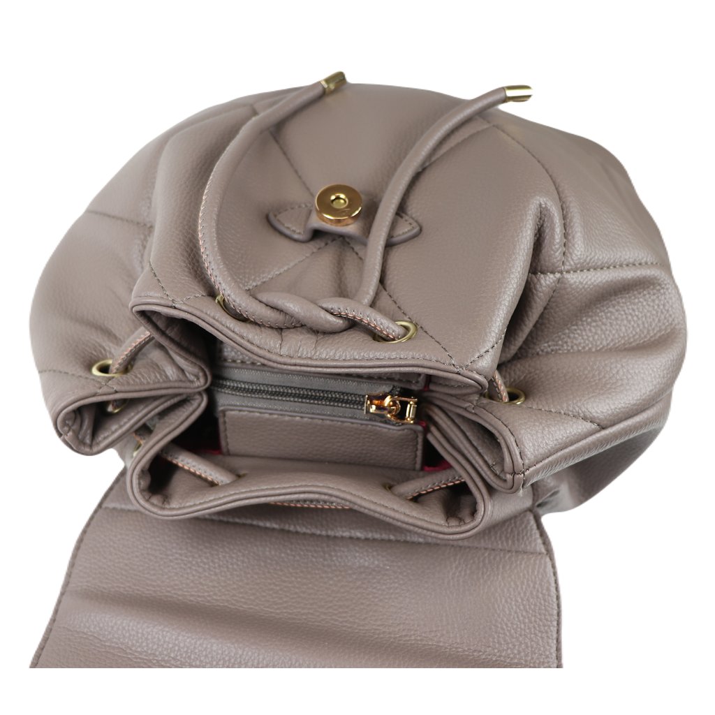 Klasický dámsky batoh. Uzatvára sa chlopňou s lemovaním z ekokože. Budete vyzerať štýlovo a budete mať voľné ruky!