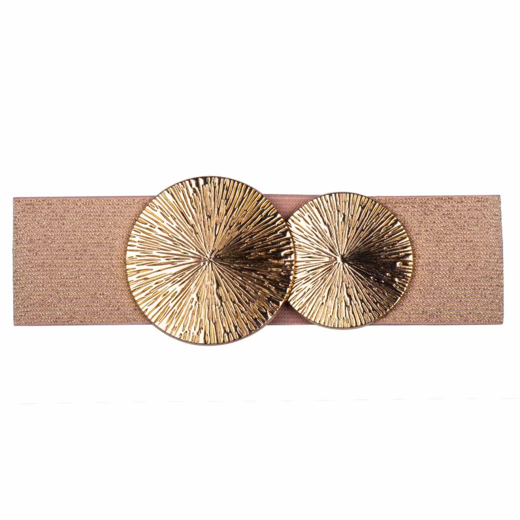 Dámsky elastický opasok so zlatou prackou - svetloružový 9001654-5