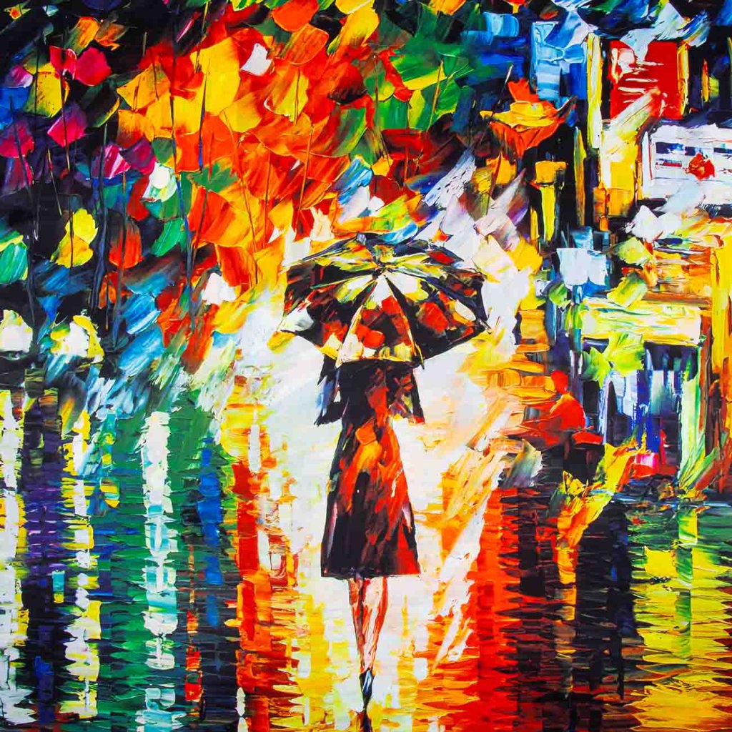Dámska šatka s potlačou maľby - Dáma s dáždnikom a Nočné mesto 9001637-18
