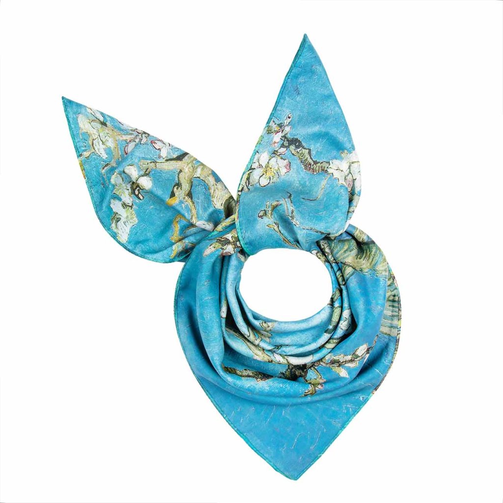 Dámska obojstranná hodvábna šatka RR3055 letuška s potlačou maľby - kvitnúci mandľovník v dvoch farebných prevedeniach 9001637-19