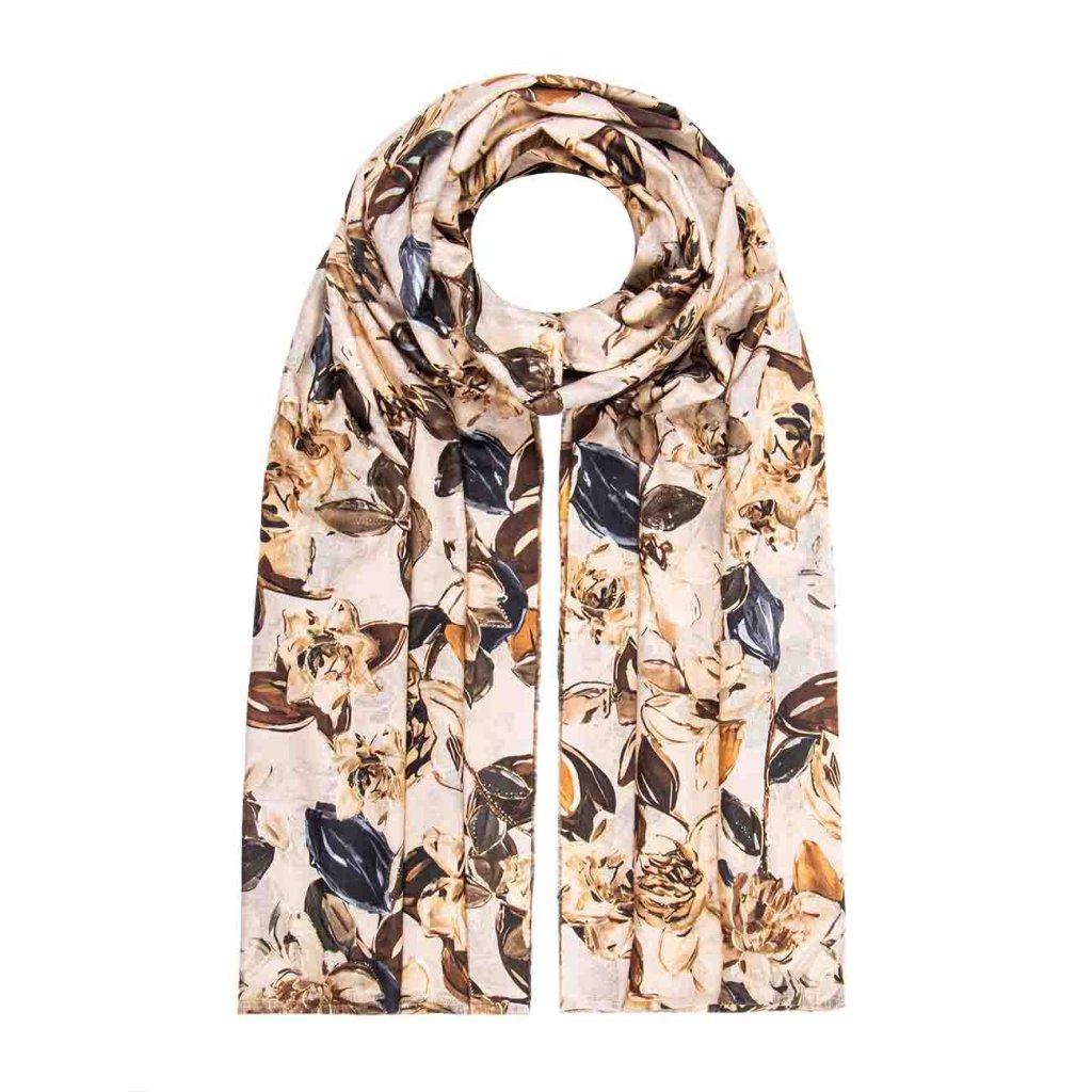 Hrejivý šál s kvetinovým vzorom a zlatou potlačou – béžový variant