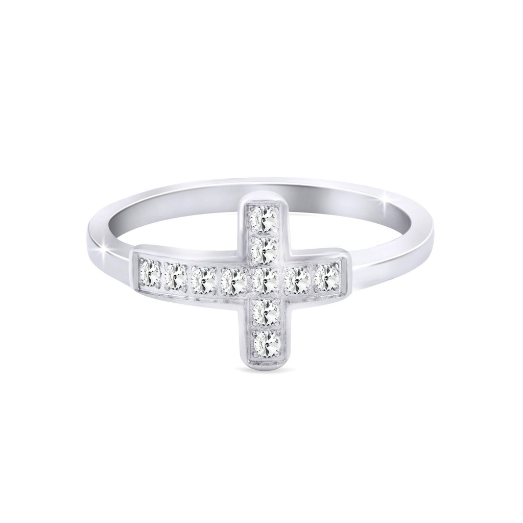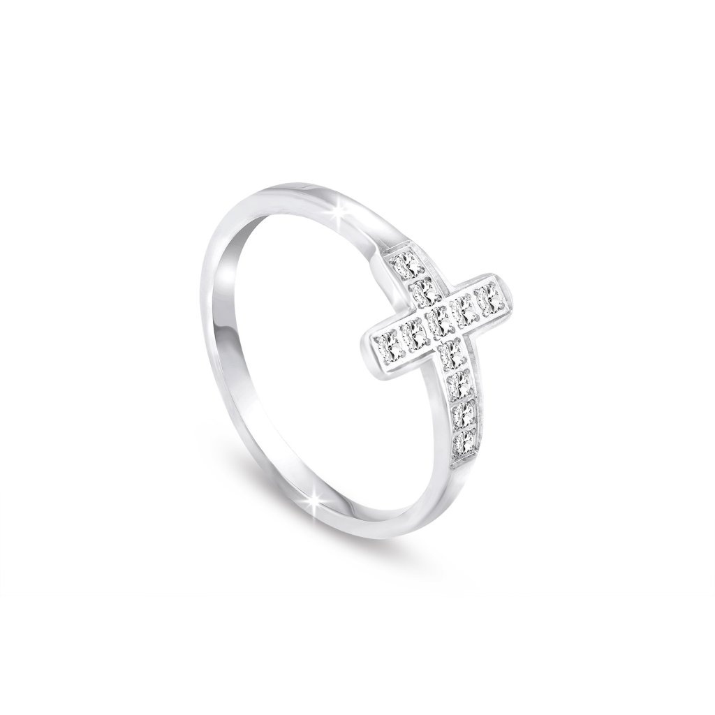 Dámsky jemný prsteň z chirurgickej ocele, krížik so zirkónmi.