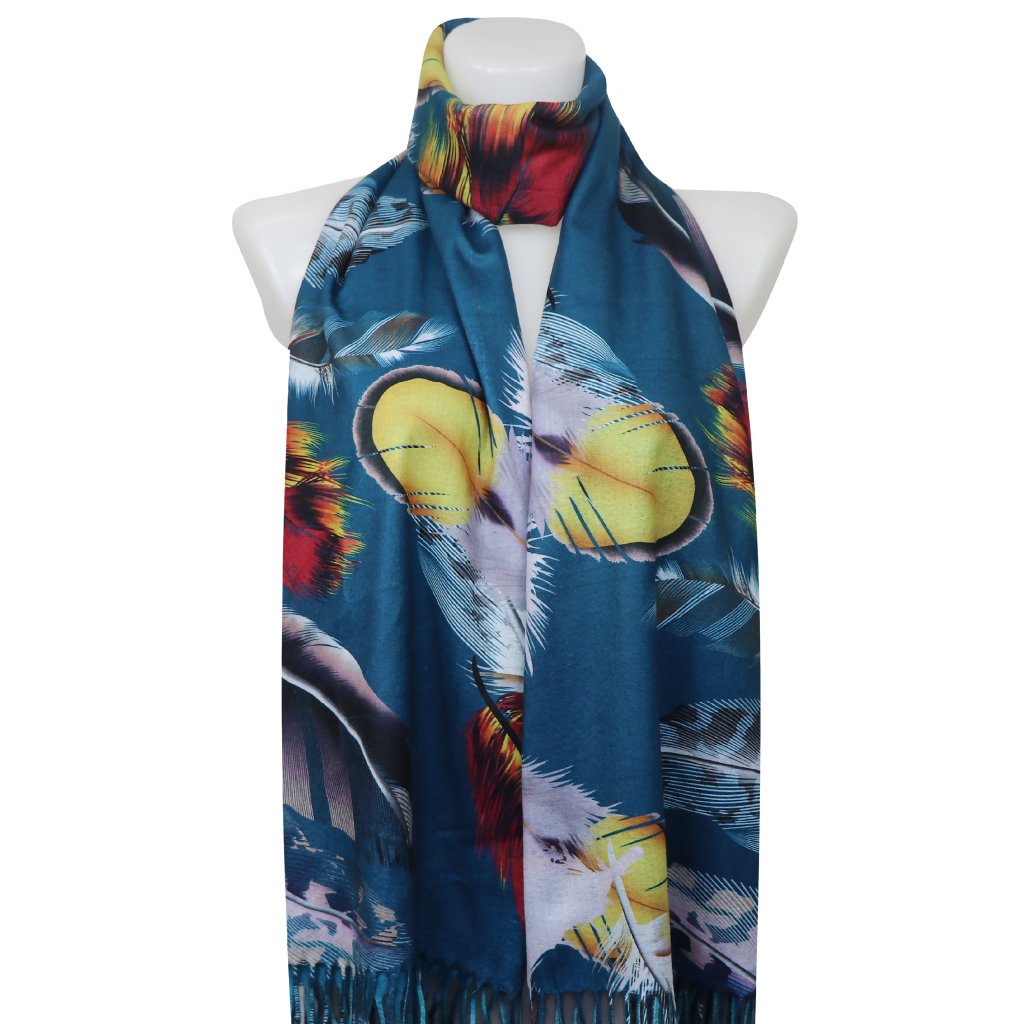 Dámsky kašmírový obdĺžnikový šál 2108-43 pierka, tyrkysovej farby 7200567-4