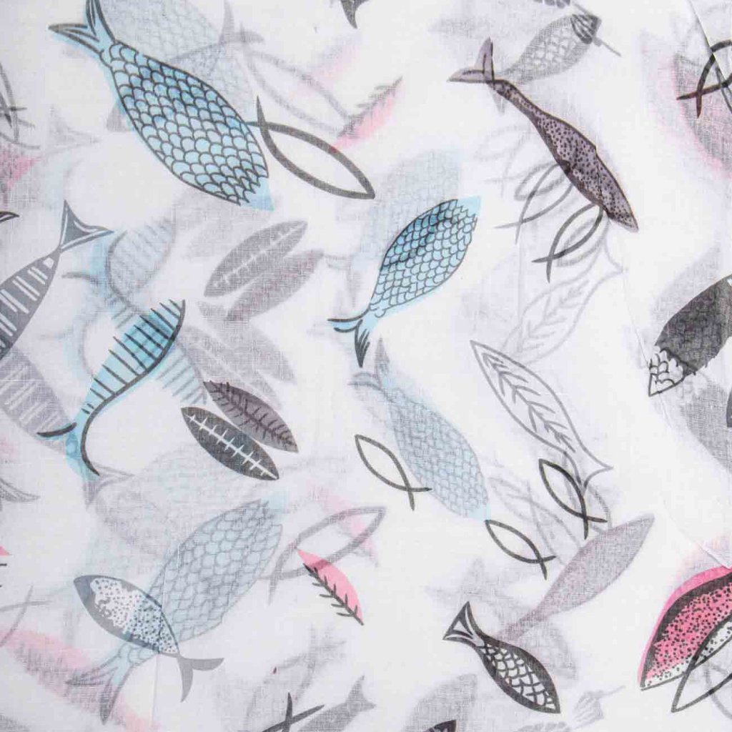 Dámsky ľahký šál biely modré rybky 7200828-5