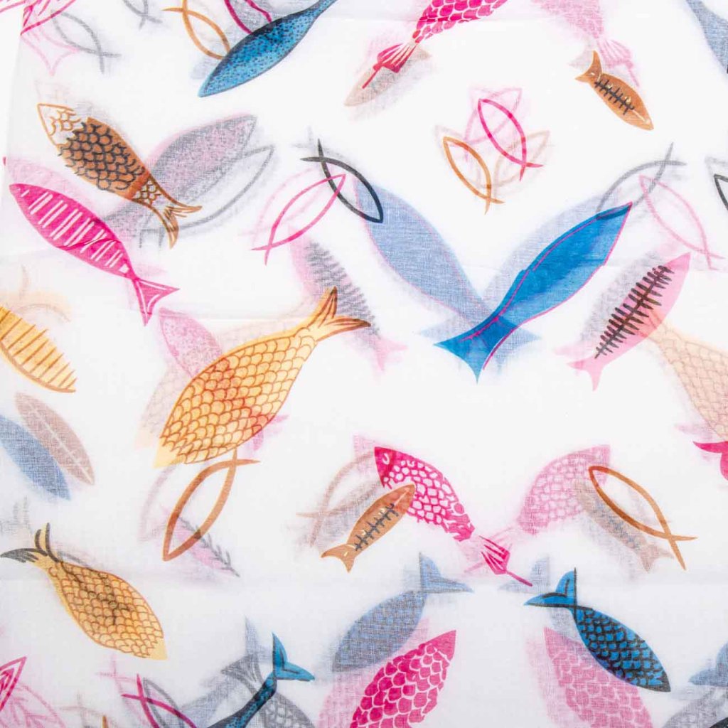 Dámsky ľahký šál biely ružové rybky 7200828-4