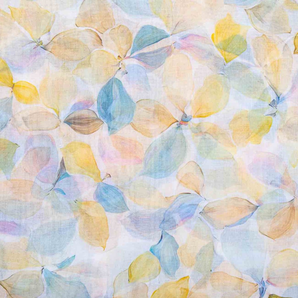 Tento žiarivý a elegantný šál zaujme jemným akvarelovým motívom listov v harmonických pastelových odtieňoch. Vďaka ľahkému a precízne spracovanému materiálu pôsobí veľmi vzdušne a prirodzene splýva pri každom pohybe. Nadčasový dizajn z neho robí výrazný doplnok, ktorý dodá outfitu sviežosť i jemnú eleganciu.