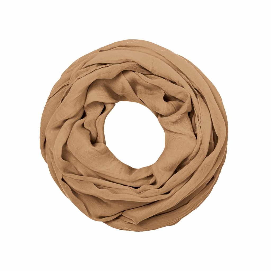 Štýlová tunelová šatka (snood) z ľahkého a príjemného materiálu, ktorý je hebký na dotyk a pohodlný pri nosení. Vďaka jednoduchému kruhovému prevedeniu sa ľahko kombinuje k akémukoľvek outfitu a vždy perfektne drží tvar.