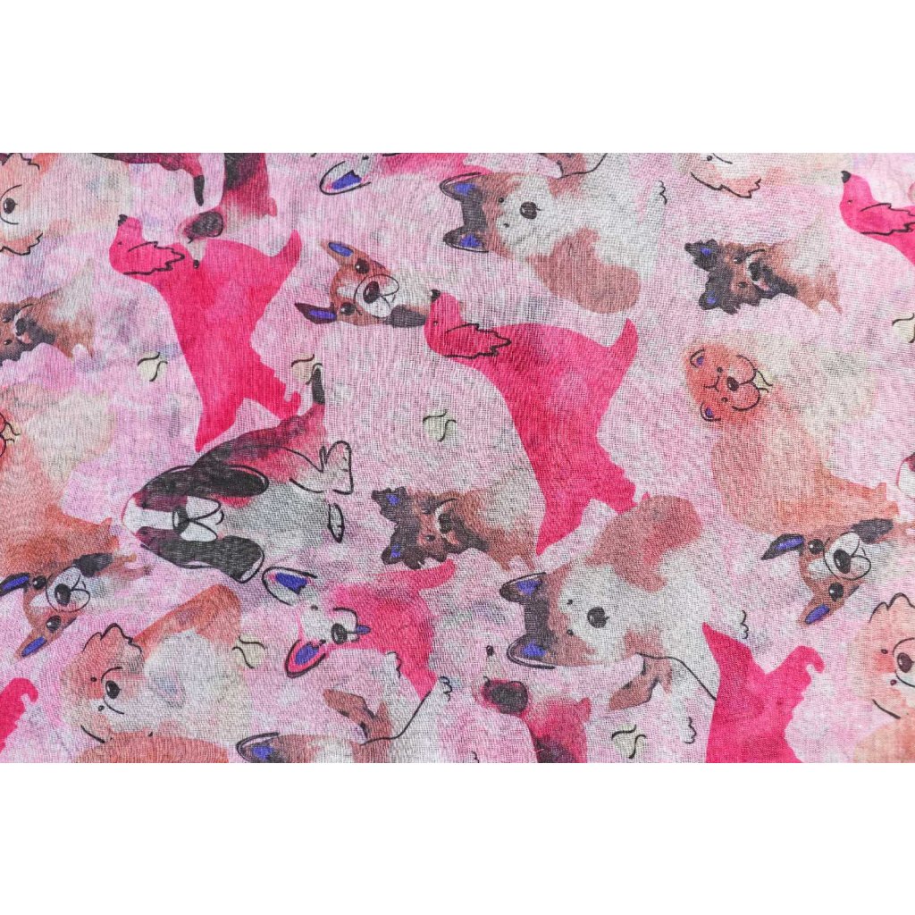 Dámska ľahká šatka s psíkmi XC36532-ružová