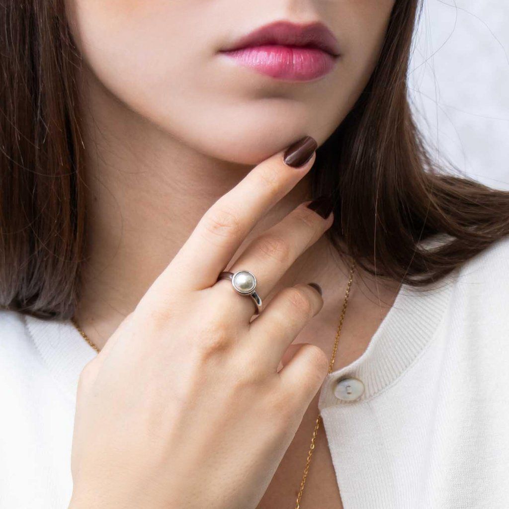 Dámsky masívny prsteň z chirurgickej ocele, biela perla.