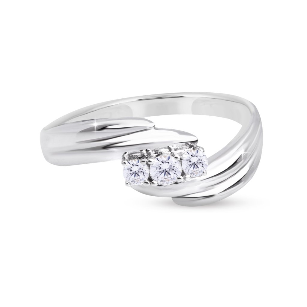 Dámsky masívny rhodiovaný prsteň, asymetrický motív s kamienkami zirkónov 4000344