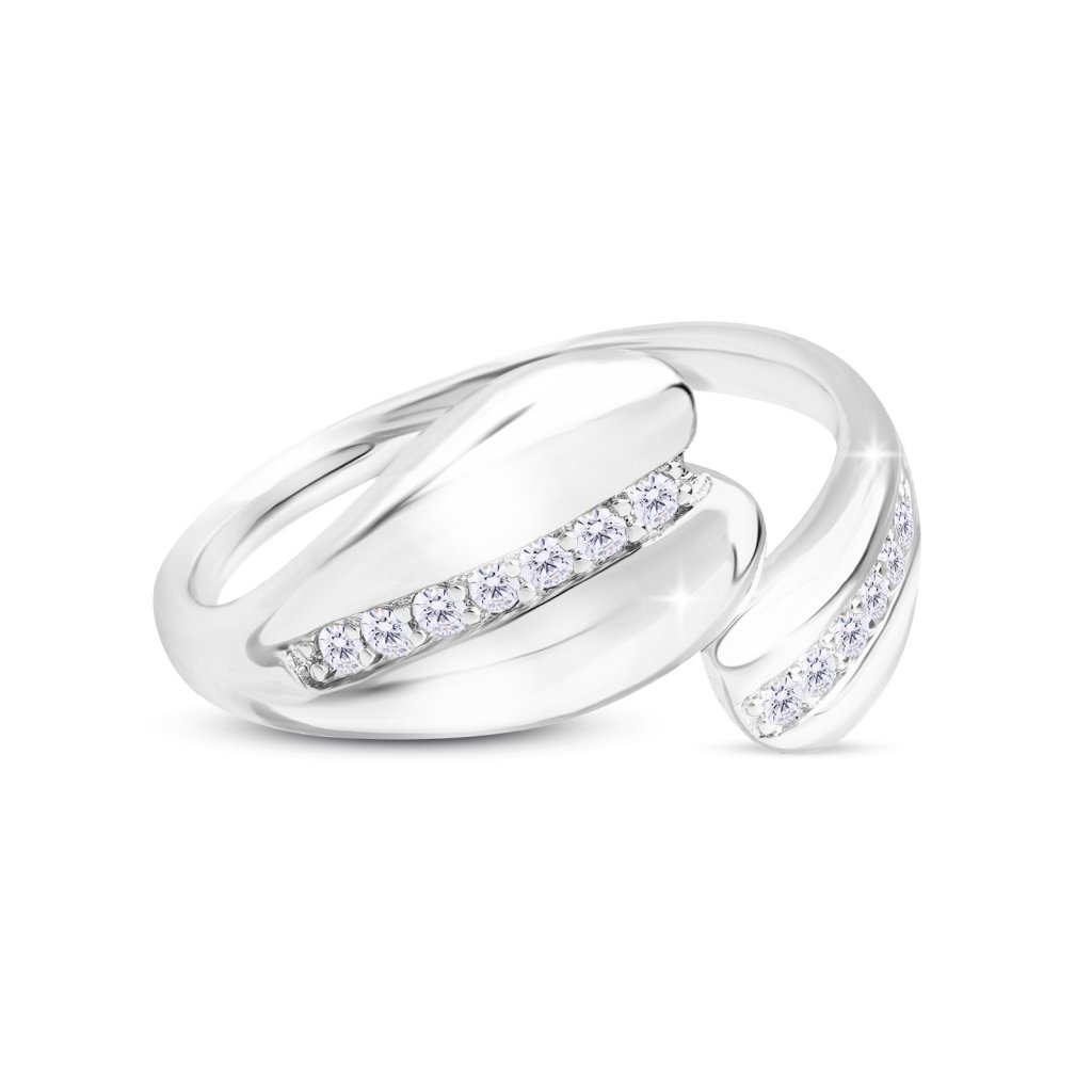 - Tento prsteň je ideálny na každú príležitosť, má striebornú farbu rhodiovaného kovu, ktorá zaisťuje jeho antialergénnosť a poskytuje asymetrický lesk vášmu každodennému vzhľadu! Navyše jeho jemné kvapky kubických zirkónov poskytujú dostatok trblietania, aby ste boli vidieť na všetkých správnych miestach.