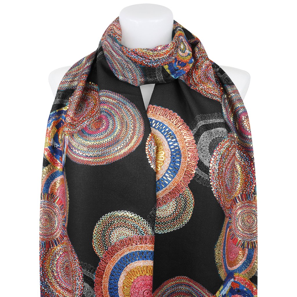 Dámský obdélníkový šátek, strom života s mandalou a se zlatou nitkou, černé barvy 7200564F