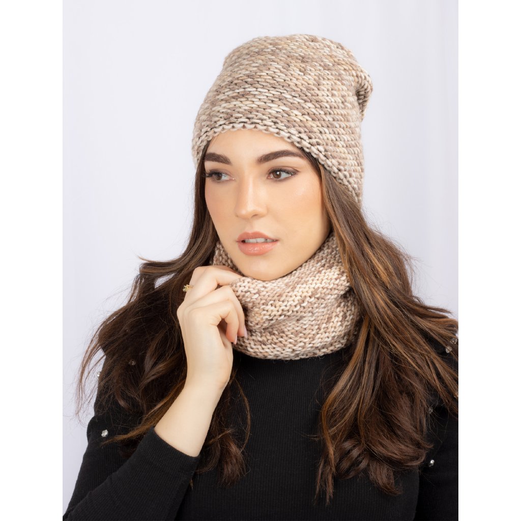 Dámsky zimný set WROBI - čiapka a tunel, melír hnedej farby