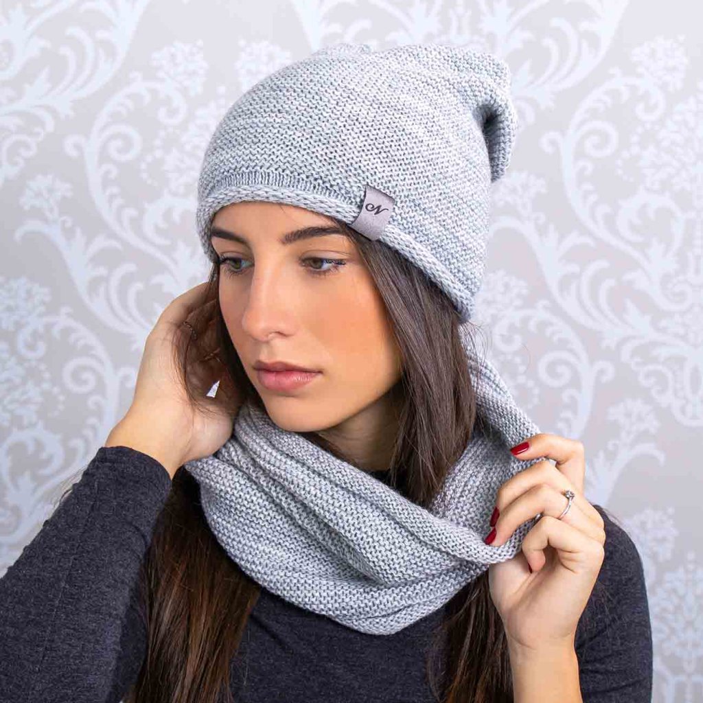 Dámsky zimný set Mark - čiapka a tunel, šedej farby