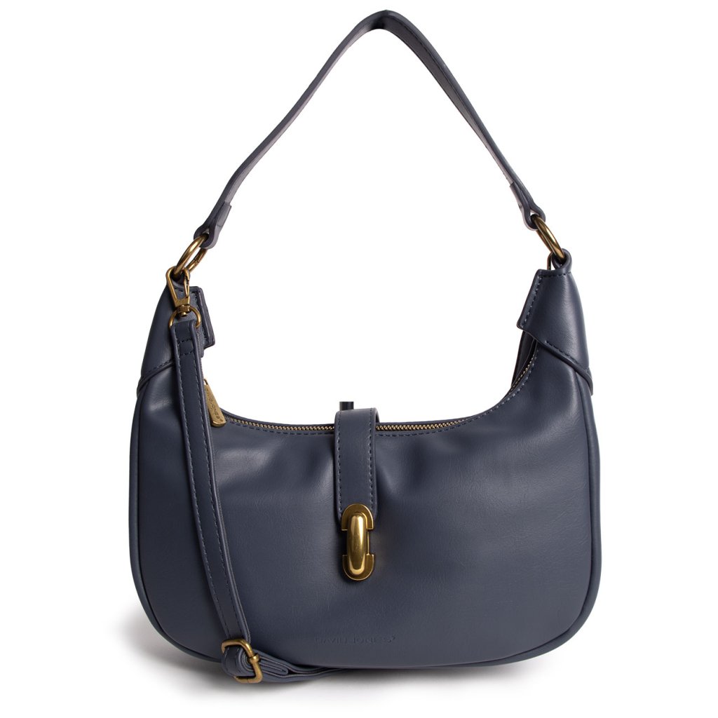 - Kabelka má zaoblený obdĺžnikový tvar. Predný panel tašky zdobí zlatá spona a vyrazené logo David Jones.