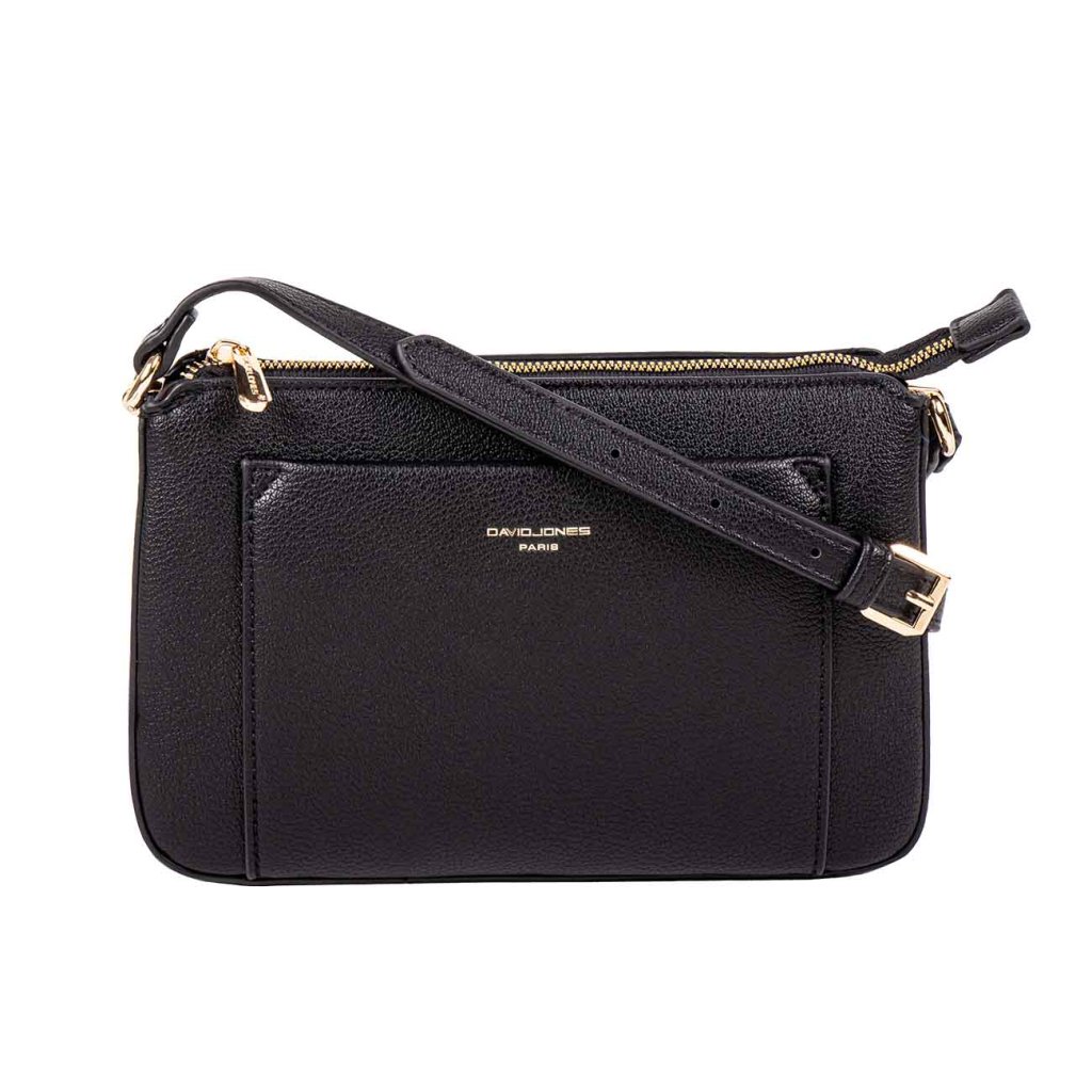 Štýlová kabelka David Jones v čiernom prevedení s jemnou štruktúrou a decentným leskom je ideálna na každodenné nosenie aj elegantné príležitosti. Vďaka svojmu praktickému tvaru, jednoduchému dizajnu a dostatku priestoru ti bude skvelým spoločníkom.