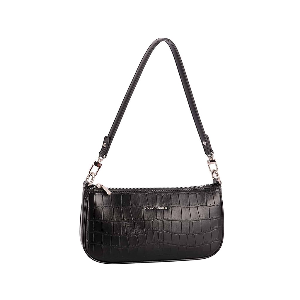 - Guľatý obdĺžnikový tvar. Predný panel zdobí jemné logo spoločnosti David Jones a ozdobná štruktúra s motívom zvieracej kože.