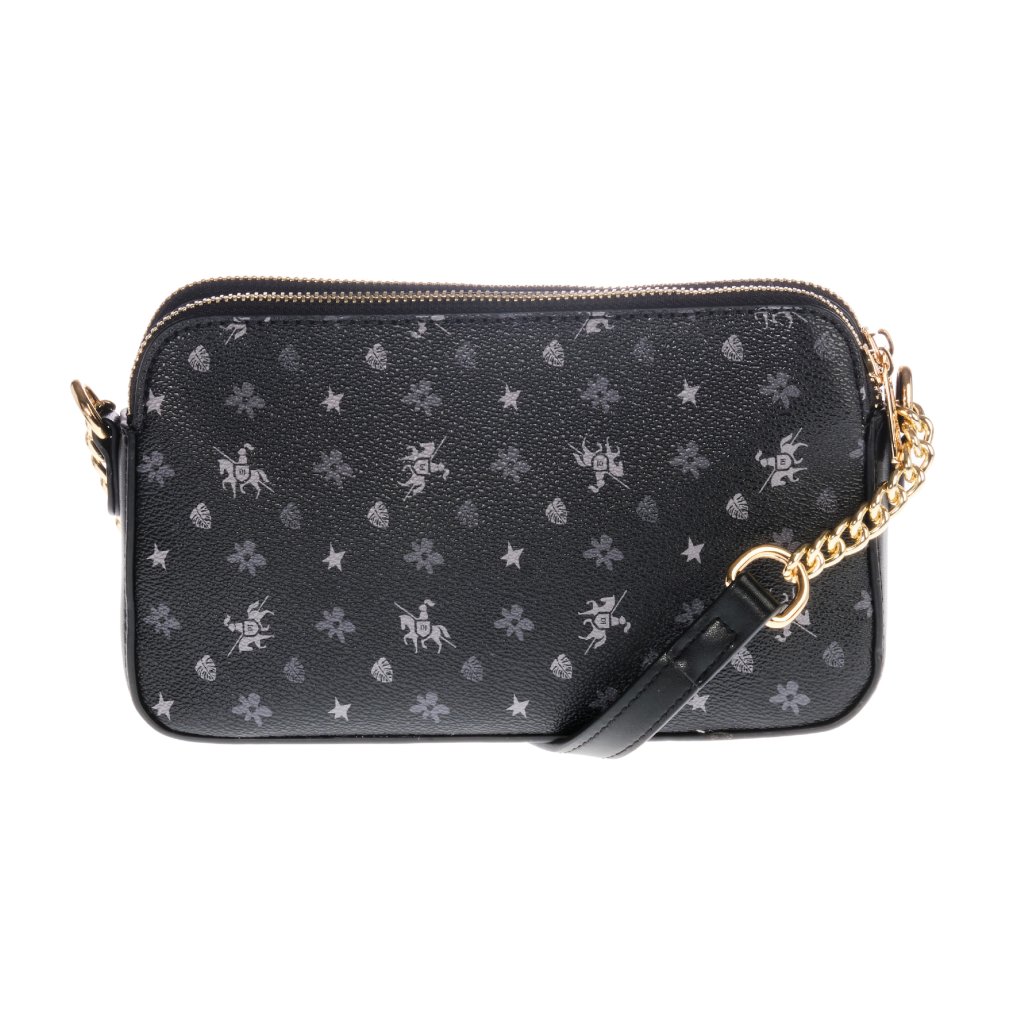 - Obdĺžnikový tvar so zaujímavým zdobením. Predný a zadný panel zdobí pekný monogram v podobe vzorov a stále sa objavujúce logo značky.