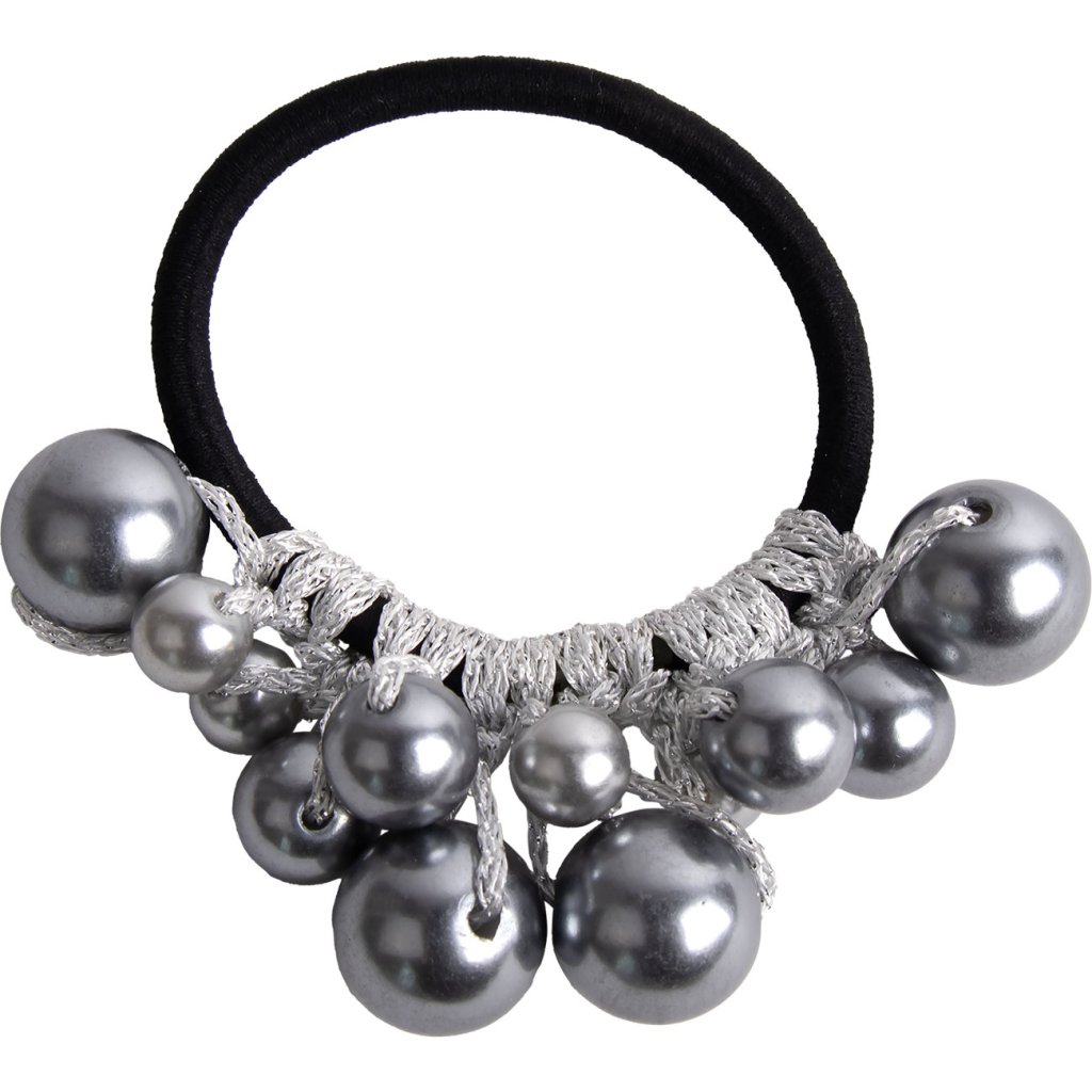 Gumička do vlasov s perličkami 3933-8 strieborná